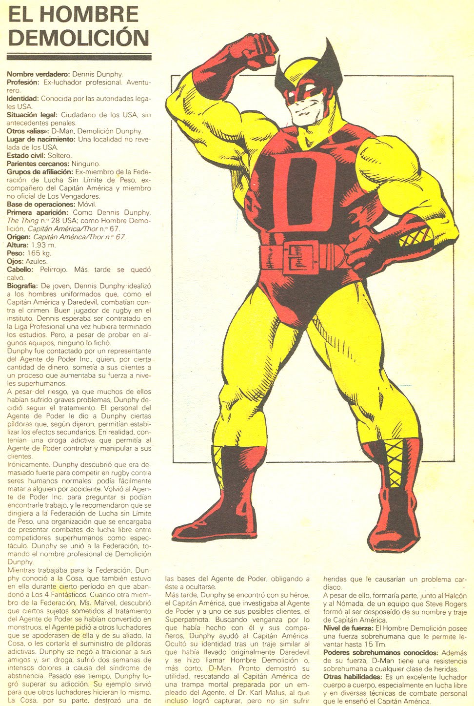 El Hombre Demolicion fue uno de los compañeros del Capitan America, experto en combate cuerpo a cuerpo y dotado de superfuerza y superresistencia.